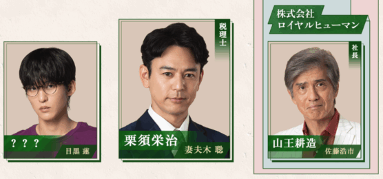 日曜劇場「ザ・ロイヤルファミリー」の公式ホームページに掲載されている人物相関図には、主人公の栗須栄治(妻夫木聡)のすぐ左横に目黒蓮の写真が掲載されていますが、その役名は「???」と書かれています。